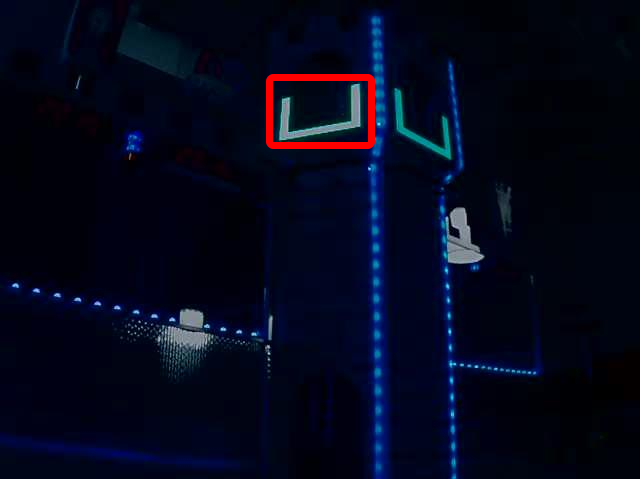 Each 2016 vision target consists of a 1’ 8” wide, 1’ tall U-shape made of 2” wide retroreflective material (3M 8830 Silver Marking Film). The targets are located immediately adjacent to the bottom of each high goal. When properly lit, the retroreflective tape produces a bright and/or color-saturated marker.